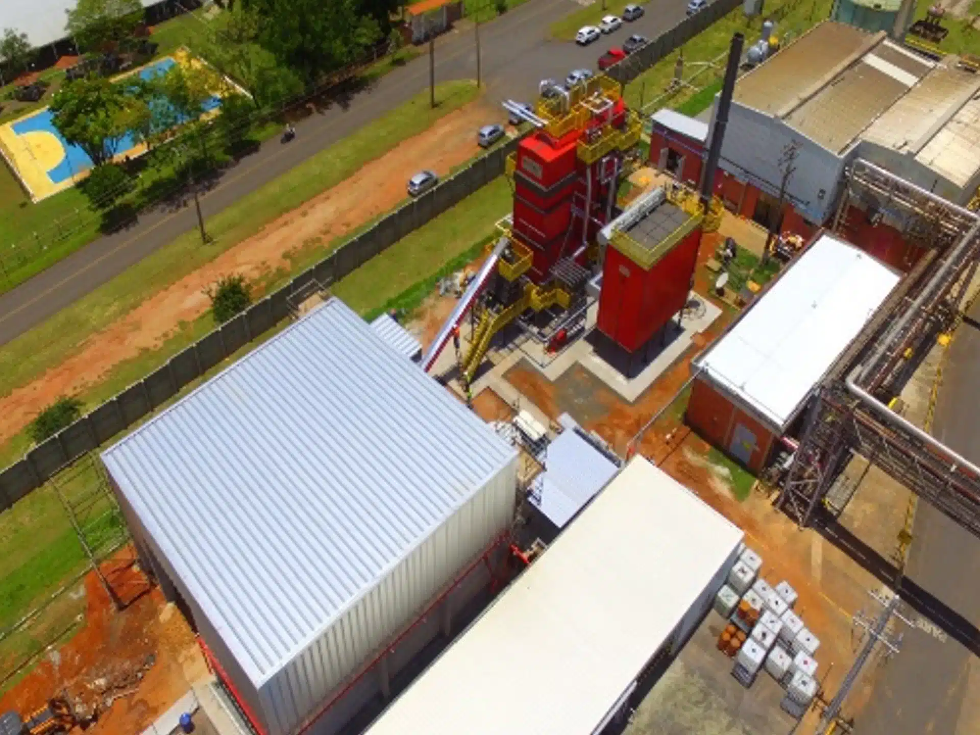 Caldeira de alta pressão a biomassa de 150 ton/h e turbina a vapor de 16.800 kW, unidade de processamento de biomassa, sistema de filtragem composto por precipitador eletrostático.