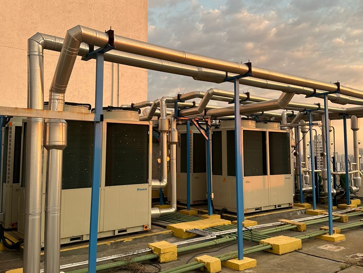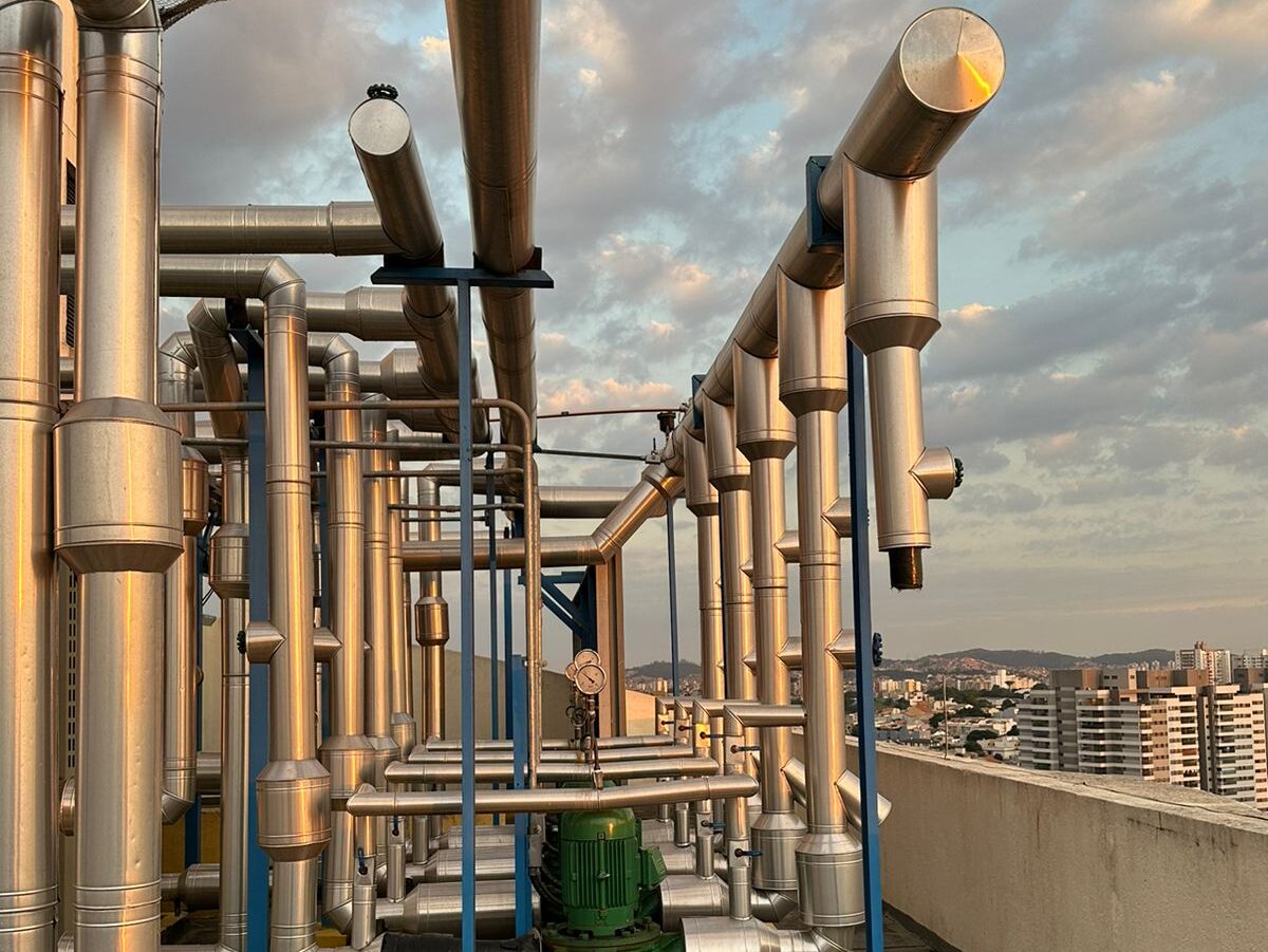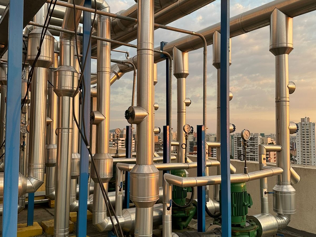 Central de água gelada, Chillers totalizando 160 TR, automação do sistema de climatização e leitura individualizada por ponto de consumo.
